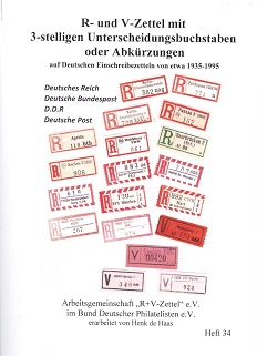 De Haas, Henk R- und V-Zettel mit dreistelligen Unterscheidungsbuchstaben oder Abkürzungen auf deutschen Einschreibzetteln von 1935 bis 1995