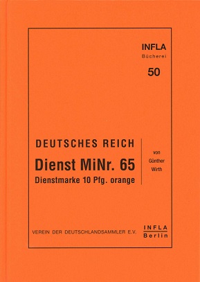 Verausgabt ausschließlich in Rollen zu 500 Stück war sie wenig beliebt, zumal ihre rote Vorgängerin noch lange in ausreichender Stückzahl vorhanden war. Dies und die fortschreitende Inflation, die einen 10 Pfg.Wert immer unnötiger werden ließ, führte zur Seltenheit echt gestempelter Exemplare. Bereits im Inflaband 1 beschäftigte sich Eduard Peschl mit dieser interessanten Marke; das vorliegende Werk ist als Fortführung zu betrachten, in welches alle aktuellen Forschungsergebnisse eingeflossen sind. Besonderes hilfreich für den Sammler ist zum Einen die detaillierte Aufstellung aller mit einer echten Verwendung bekannten Postorte, zum Anderen eine Liste der bekannten, für massenhafte Nachstempelungen verwendeten Stempel. Des weiteren ist ein Seltenheitsregister, in dem alle bekannten Ganzbelege in EF, MEF und MiF aufgeführt, beschrieben sowie farbig abgebildet sind, enthalten. Den Abschluss bildet „Der Fall Eppingen„, in welchem das Vorkommen eine größere Anzahl von erhaltenen Dienstbriefen des Bezirksnotars Ludwig Carl abgehandelt wird. Der Notar war Philatelist, er verklebte jeweils eine D 65 in MiF auf seiner Amtspost und ließ sich die Umschläge von den Empfängern wieder aushändigen.