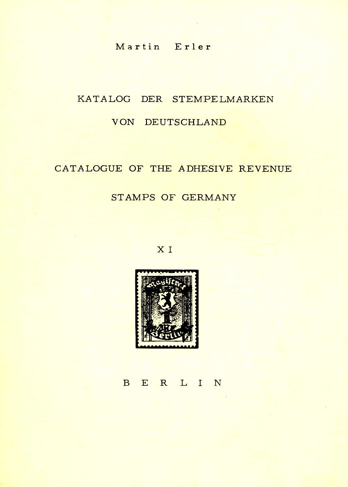 Erler Katalog der Stempelmarken von Deutschland XI Berlin / Catalogue of the adhesive revenue stamps of Germany