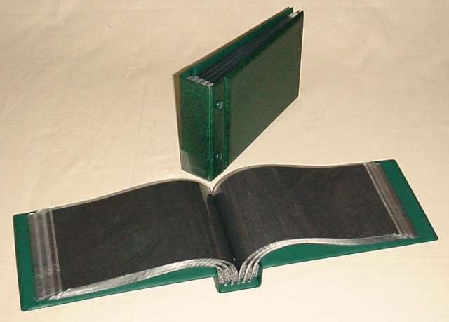 Kobra Briefalbum G3 Farbe grün mit 50 glasklaren Taschen (Öffnung oben) aus weichmacherfreier Folie (0,03 mm dick) mit schwarzem Kartonzwischenblatt