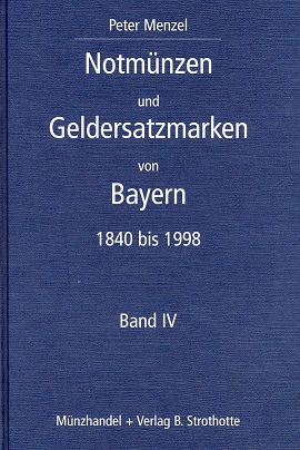 Menzel, Peter Notmünzen und sonstige Geldersatzmarken von Bayern 1840-1998 Band IV1. Auflage 1999, 560 Seiten, Format 16,5x24cm, gebunden, Hardcover.