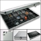 Safe Vitrine Alu Small Nr. 5618 Vitrine ohne jegliche Unterteilung, mit blauem Velour ausgekleidet, geeignet auch für Mineralien in Dosen. Abmessungen: 295 x 203 x 45 mm.