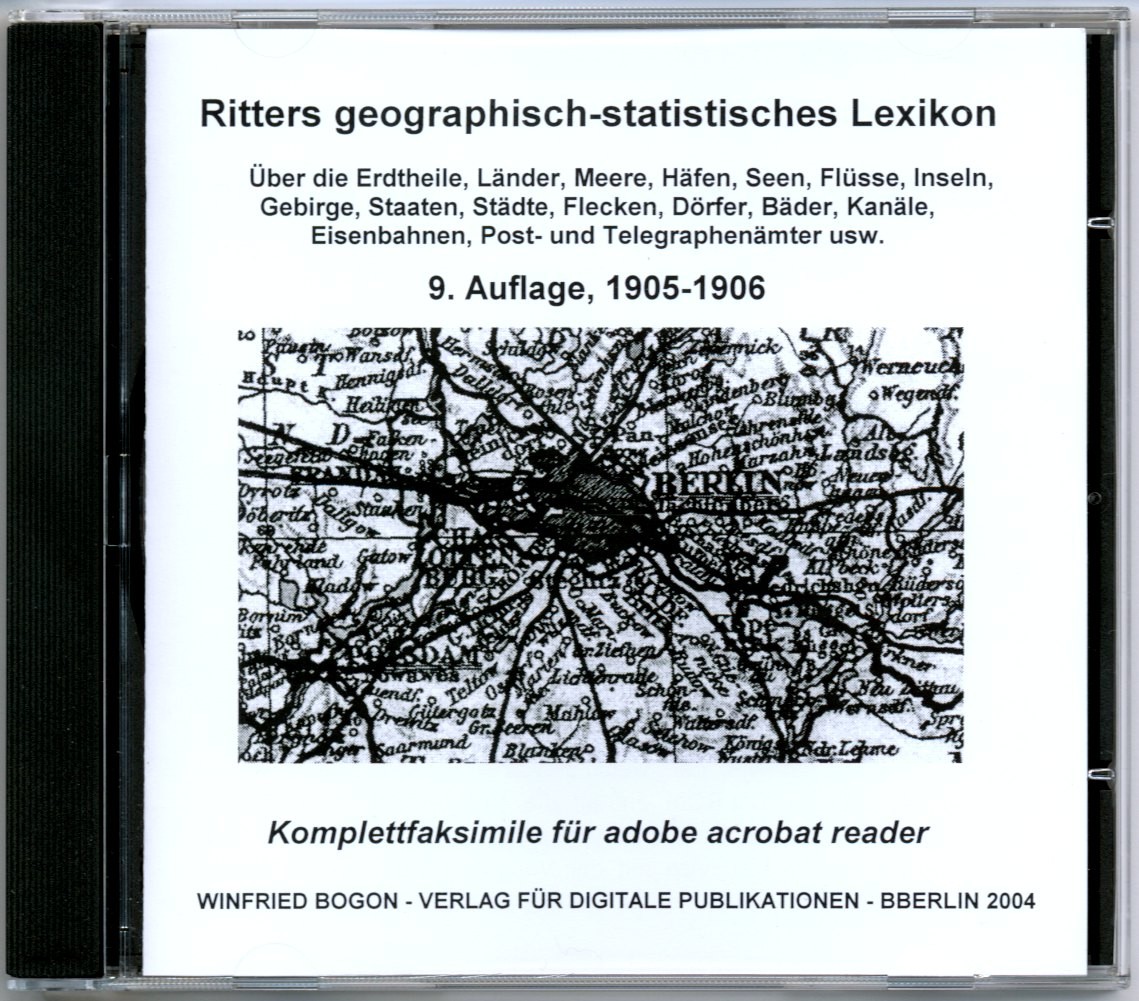 über die Erdteile, Länder, Meere, Buchten, Häfen, Seen, Flüsse, Inseln, Gebirge, Staaten, Städte, Flecken, Dörfer, Weiler, Bäder, Bergwerke, Kanäle, Eisenbahnen etc.; Leipzig, 9. Auflage 1905-1906. 2607 S. Digitaler Nachdruck