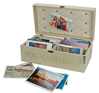 Schön gestaltete Postkartenbox im "Vintage Look".