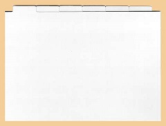 Satz Registerkarten bestehend aus 6 Einzelkarten mit jeweils versetzten, beschriftbaren Registerzungen