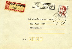 35 verschiedene R-Brief-Provisorien Bundesrepublik C6/DIN, R-Zettel der ehemalige DDR Mit handschriftlichen Eintragungen oder Gummistempel, frankiert, Zeitraum ca. 1992