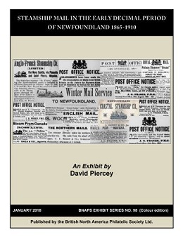 In Steamship Mail in der frühen Dezimalperiode von Neufundland 1865-1910 präsentiert David Piercey eine postgeschichtliche Ausstellung, die auf Dampfschiffrouten organisiert ist, entweder um die Insel herum für die Inlandskommunikation oder außerhalb der Insel für die Kommunikation mit dem Rest Nordamerikas oder mit Großbritannien und der Rest der Welt. Neben der Schwierigkeit, dieses knappe Material einfach zu beschaffen, bestand die größte Herausforderung bei der Zusammenstellung des Exponats darin, einige der weniger bekannten Wege zu bestimmen und zu veranschaulichen, auf denen gelegentlich Post von der Insel befördert wurde. Auf der BNAPEX 2017 CALTAPEX erhielt die Ausstellung sehr hohe Auszeichnungen, darunter eine Goldmedaille und den Alan Steinhart Reserve Grand Award, für die Tiefe des Studiums und der Forschung, die sie demonstriert.