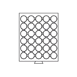 Diese Münzbox ist mit einer hellroten Einlage ausgestattet. Die Schublade für diese Einlage ist in einem grauen Ton gehalten. Diese Münzboxen sind speziell für Leuchtturm-Münzkapseln geeignet, Sie können problemlos die Kapseln einlegen und wieder herausnehmen. Die 42 runden Fächer sind für Münzkapseln bis zu einem Außendurchmesser von 30,5 mm (CAPS 24,5) verwendbar. Die Kapsel CAPS 24,5 ist z.B. für folgende Münzen vorgesehen: US Quarters, 1 Sfr. oder für die 1 Euro Münzen. Außenformat (B/L/H) 236 x 303 x 20 mm.