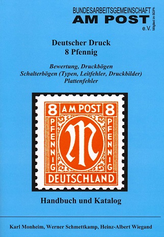 Monheim, Karl/Schmettkamp, Werner/Wiegand, Heinz-Albert AM Post Deutscher Druck 8 Pfennig Bewertung, Druckbögen, Schalterbögen (Typen, Leitfehler, Druckbilder) Plattenfehler