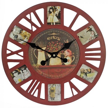 Mahagonifarben im Retrostyle. Für 6 Fotos Ihrer Wahl. Für die Küche, das Esszimmer, Wohnbereich die passende, dekorative Wanduhr.