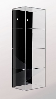 Wunderschöne Acryl-Vitrine mit schwarzer Rückwand und 4 Ebenen. Schiebetüre an der Vorderseite kann komplett geöffnet werden. Wahlweise als Stand-oder Wandvitrine zu verwenden. Die Vitrine wird zusammengebaut geliefert. Aus stabilem Acryl.