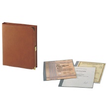 Jede Ringkassette ENTHÄLT 10 aus transparenter Folie hergestellte, dokumentenechte Taschen und wird in reiner Buchbinder-Handarbeit hergestellt.