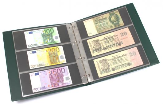 inklusive 20 glasklaren, dreigeteilten Einsteckblättern für 120 Banknoten bis 235 x 90 mm