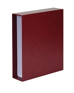 Lindner Kassette zu Ringbinder PUBLICA LS-weinrot Nr. 3504W Schutzkassette aus kaschiertem Karton für Ringbinder PUBLICA LS. Format: 295 x 325 x 70 mm.