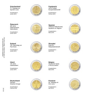 Lindner Vordruckblatt 2 EURO Nr. 1118-18 Gedenkmünzen ab Griechenland 2016-Finnland 2016