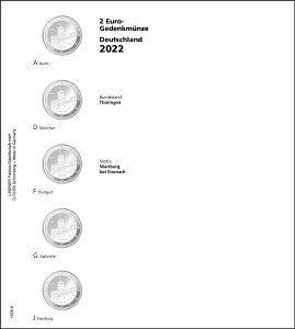 Lindner VORDRUCKBLATT KARAT 2 EURO-GEDENKMÜNZE DEUTSCHE BUNDESLÄNDER": 2020/2021 THÜRINGEN Nr. 1505-9"