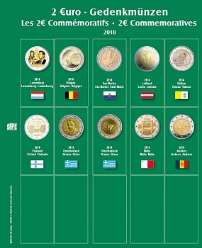 Münzblatt mit Vordruckblatt für Premium-Münzen-Album 2€. Für 2€-Münzen des Jahres 2018.