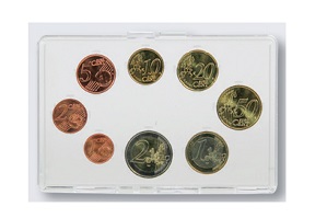 Volltransparent mit „Stiften„ zum Halten der 8 Euro-Münzen.