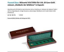Leuchtturm Münzetui Volterra für 6 dt. 20€ Goldmünzen Rückkehr der Wildtiere in Kapseln Nr. 366791