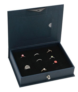 Die Ringkassetten Leonardo sind liebevoll in traditioneller Buchbinder-Handarbeit gefertigt und mit original „Florentiner-Buntpapier„ bezogen. Dieses Papier aus der Toskana wird durch ein spezielles Druckverfahren und eine spezielle Goldprägung besonders wertvoll. Der Verschluss der Kassetten erfolgt durch eine Echtleder-Klappe, die auf eine Chromknopf geschoben wird. Die Ringe werden einfach auf eine mit schwarzem Velours bezogene, 15 mm dicke Schaumstoffeinlage eingesteckt. Die Ringe sind geschützt, sitzen fest in ihrer Position und können ungehindert betrachtet und auch wieder umgesteckt werden.