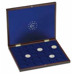 Holz-Münzkassette für 10-Euro-Gedenkmünzen in Original-Kapselnhochwertige Münzkassette in mahagonifarbener Holzmaserung