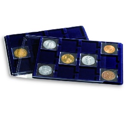 Leuchtturm Münztableau mit 12 Fächern f. Münzrähmchen bis 67x67mm oder QUADRUM XL, blau, mit Schutzdeckel Nr. 343237