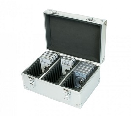 Kompakter Koffer im Aluminium-Design mit Moosgummi-Einsätzen zur Unterbringung von bis zu 30 Slabs.