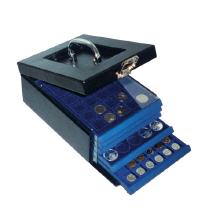 Die hochwertigen, handgearbeiteten NOVA-Münzkoffer mit eingebautem Schloß lassen sich dank der eingelassenen, klappbaren Griffe einfach in Regalen unterbringen und stapeln.