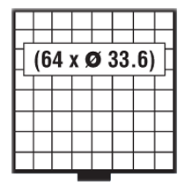 Einzelschubladenelement. · Für 64 Münzen bis 33,6 mm Durchmesser. · Max. Füllhöhe: 9mm, d.h. auch für Münzen in Kapseln geeignet.