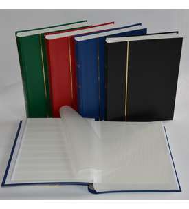 COMFORT Einsteckbuch A4, unwattiert, 9 Klarsicht-, bzw. Pergamin-streifen pro Seite, Zwischenblätter doppelt, Doppel-Gelenk-Bindung. Lieferbar sortiert in den Farben blau, grün, rot und schwarz.