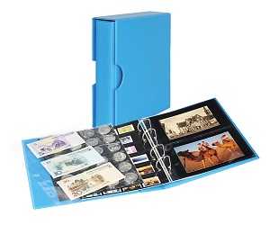Publica M Color Fotoalbum/PostkartenNautic blau mit passender Schutzkassette Nr. S3542PK-Mit 10 geteilten, beidseitig bestückbaren Folienblättern.